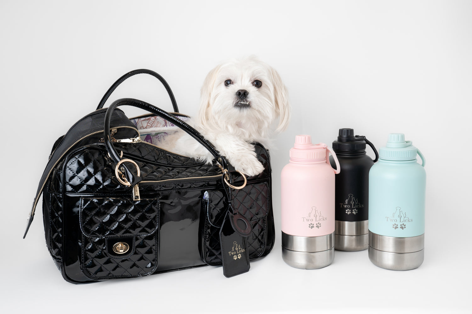 Our beautiful patent leather dog carrying case features a chic look and a great design.